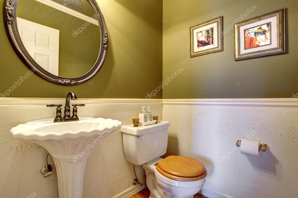 Vintage Half Bathroom With Green Walls Stock Photo By C Iriana88w 77672648